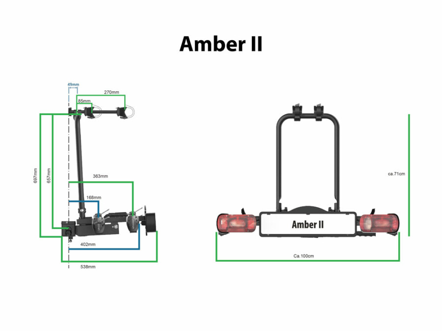 Amber II je lahki nosilec za kolesa, zasnovan za prevoz dveh koles.